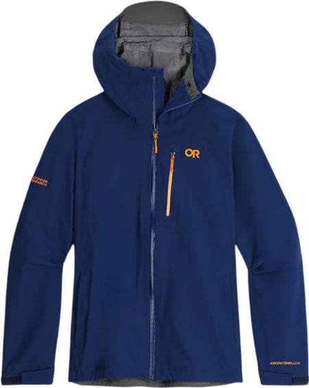 The Foray features an all-new stretchy three-layer 100% recycled nylon shell that moves, flexes, and compliments the body's range of motion and Nikwax's Direct.Dry, a high-performance, durable factory-applied DWR exclusively available on our Foray/Aspire Collection. Our proprietary AscentShell™ Dry technology delivers superior breathability, waterproofing, and wind resistance, keeping moisture out and allowing sweat vapor to effortlessly pass through to regulate body temperature. Our legendary TorsoFlo™ venting design provides rapid dump by unzipping nearly the entire length of the side of the jacket from the hem to the bicep and allows the wearer to access base layers, pockets, and waist belts without removing the jacket. Other features include a fully adjustable hood with bonded brim, YKK® Aquaguard® zippers, zippered chest and hand pockets, and an internal pocket key clip.